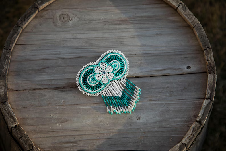 Ethnic beaded barrette, Indigenous hair clip, Huichol hair accessory, Native beaded product, , Indigenous made, powwow regalia