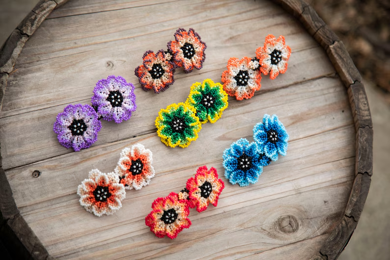 Ethnic hand beaded barrettes, indigenous hair clips, Huichol hair accessory, Wixarika beaded product, handmade barrette