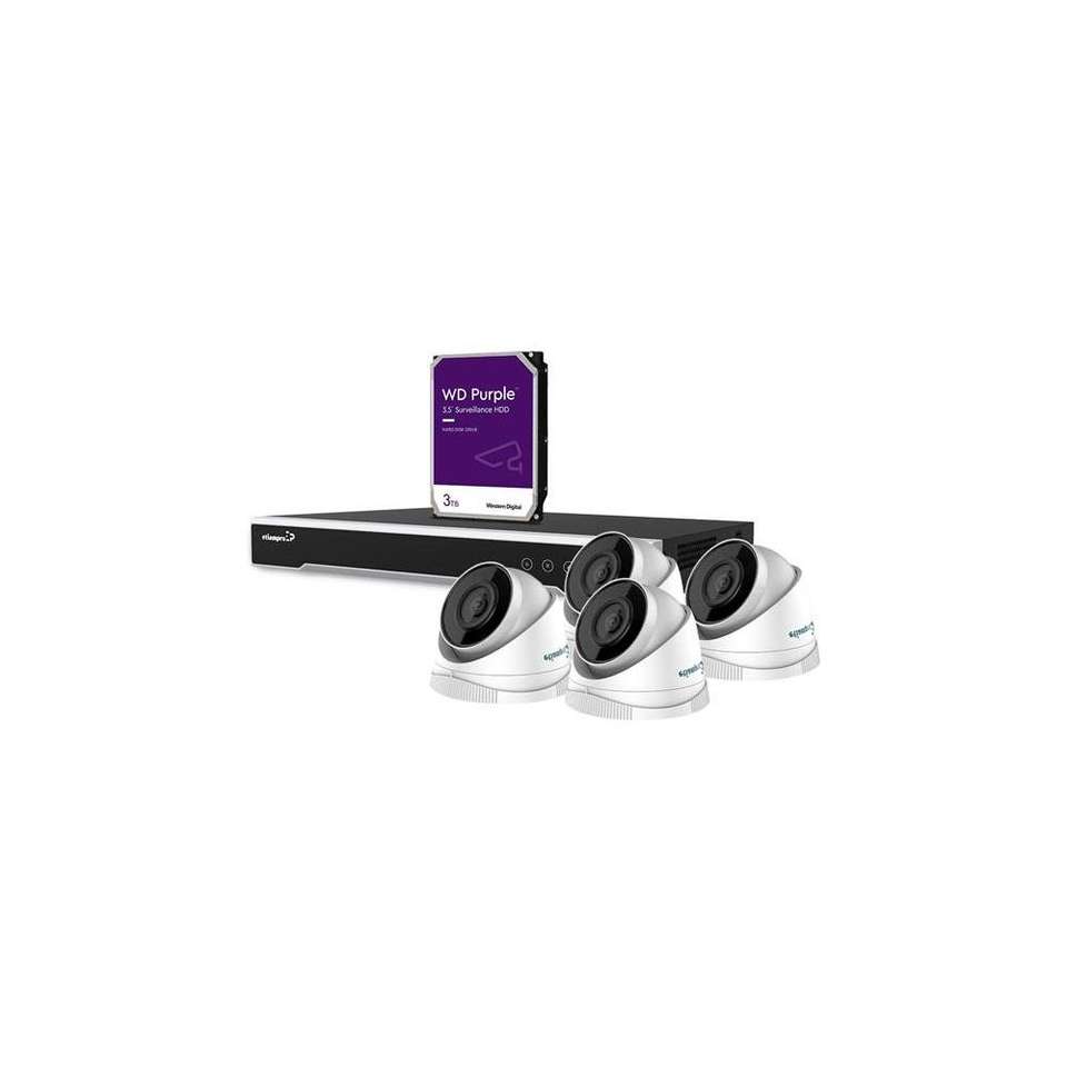 EtiamPro 4 MP IP SECURITY CAMERA SET - 8-CHANNEL NVR - 4 x WHITE IP DOME CAMERA - 3 TB HD - CABLES
