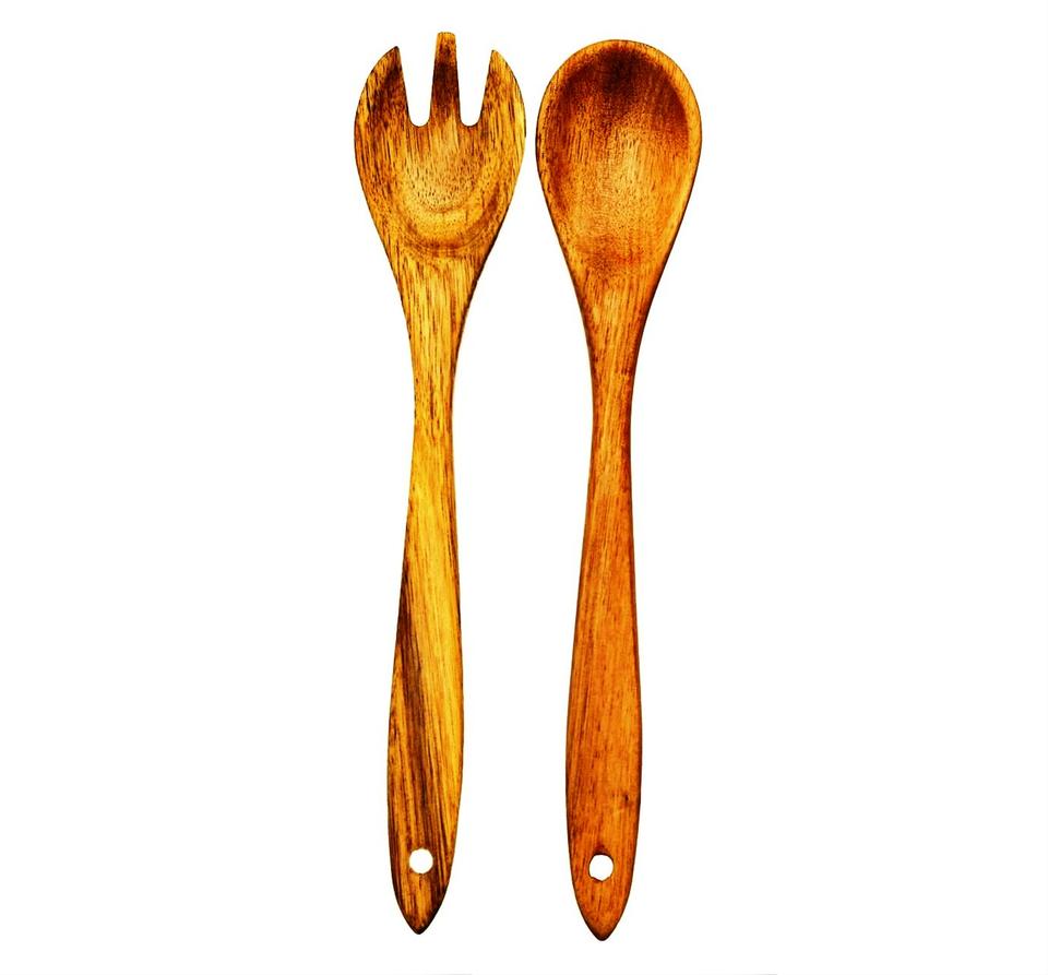 Etiquette Foundations Salad Serving Horn Utensil Made in India Wooden Salad Server Utensil Kitchen Tools Set