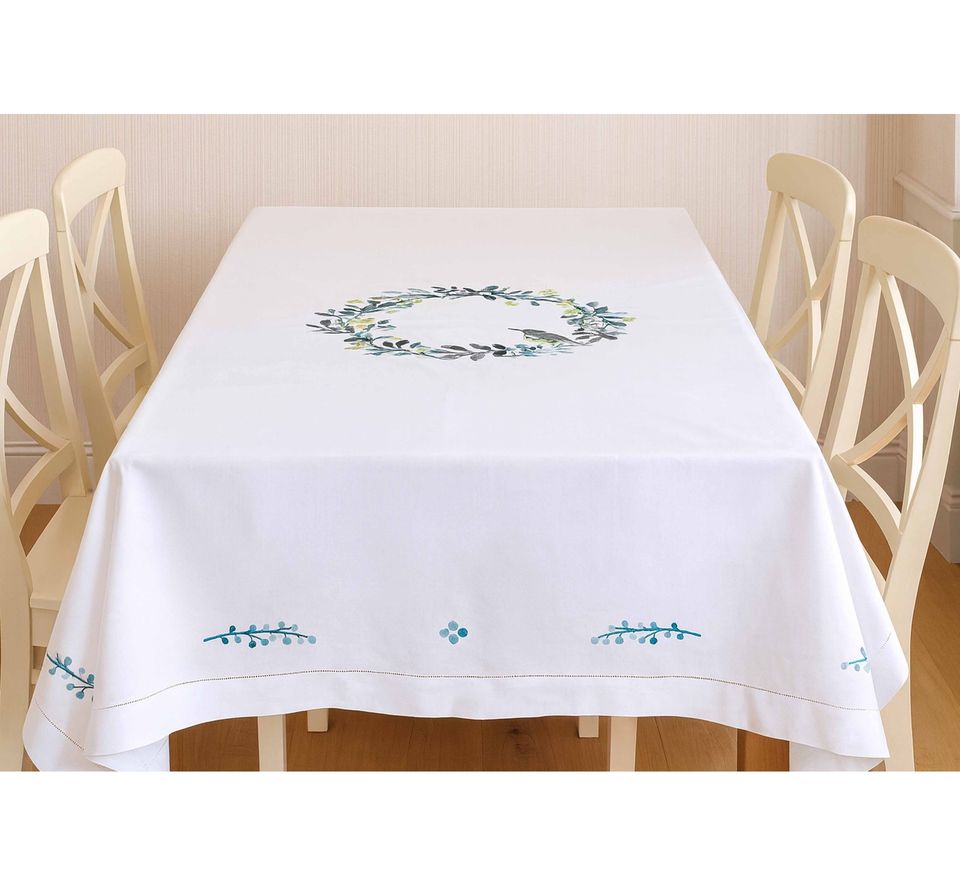 Eucalyptus Grace Linen Tablecloth | Premium 100% Natural Linen, Eco Friendly Reusable Table Cover Customize