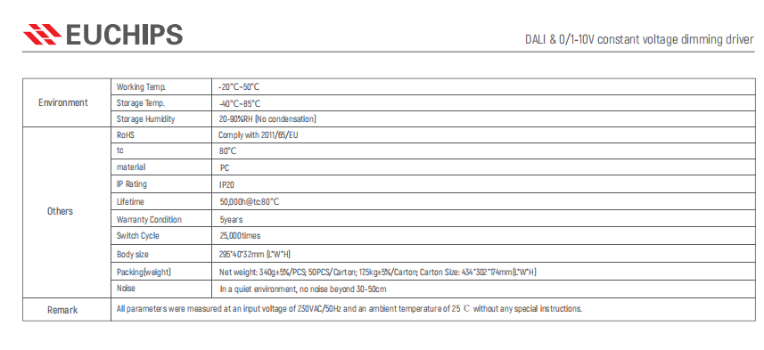 Euchips LCP150AD-1H24V 150W 24V DC DALI LED Power Supply 220-240VAC Input 80-89% Efficiency
