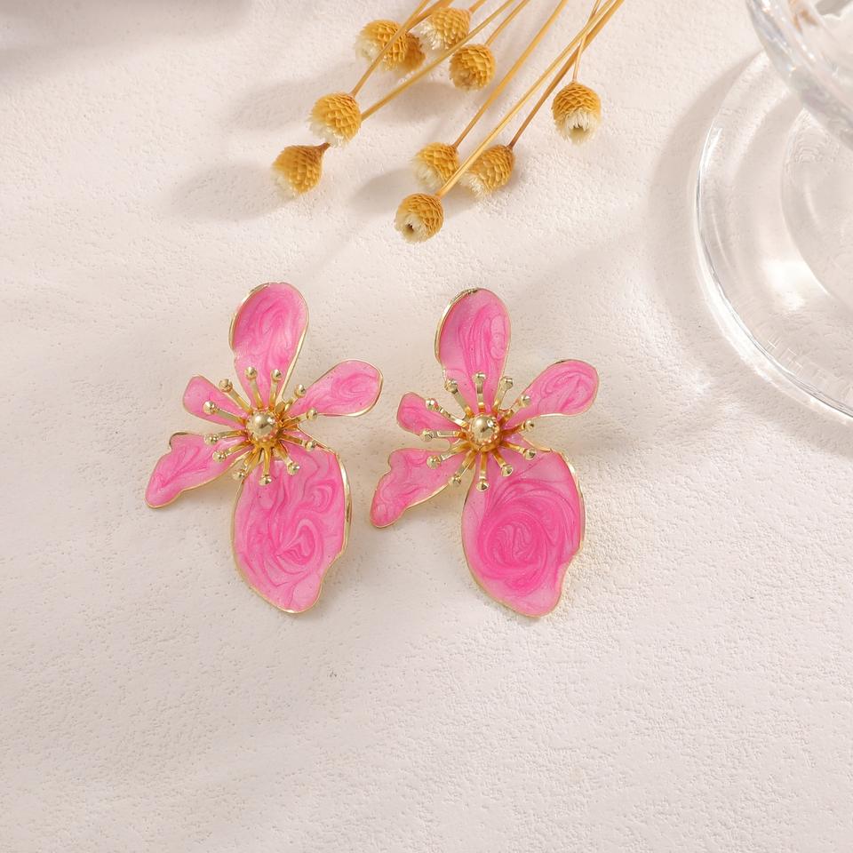 Euro-American Style Creative Colored Metal Irregular Large Flower Stud Earrings Yuwen 24K Gold Plated Unisex Classic Gift