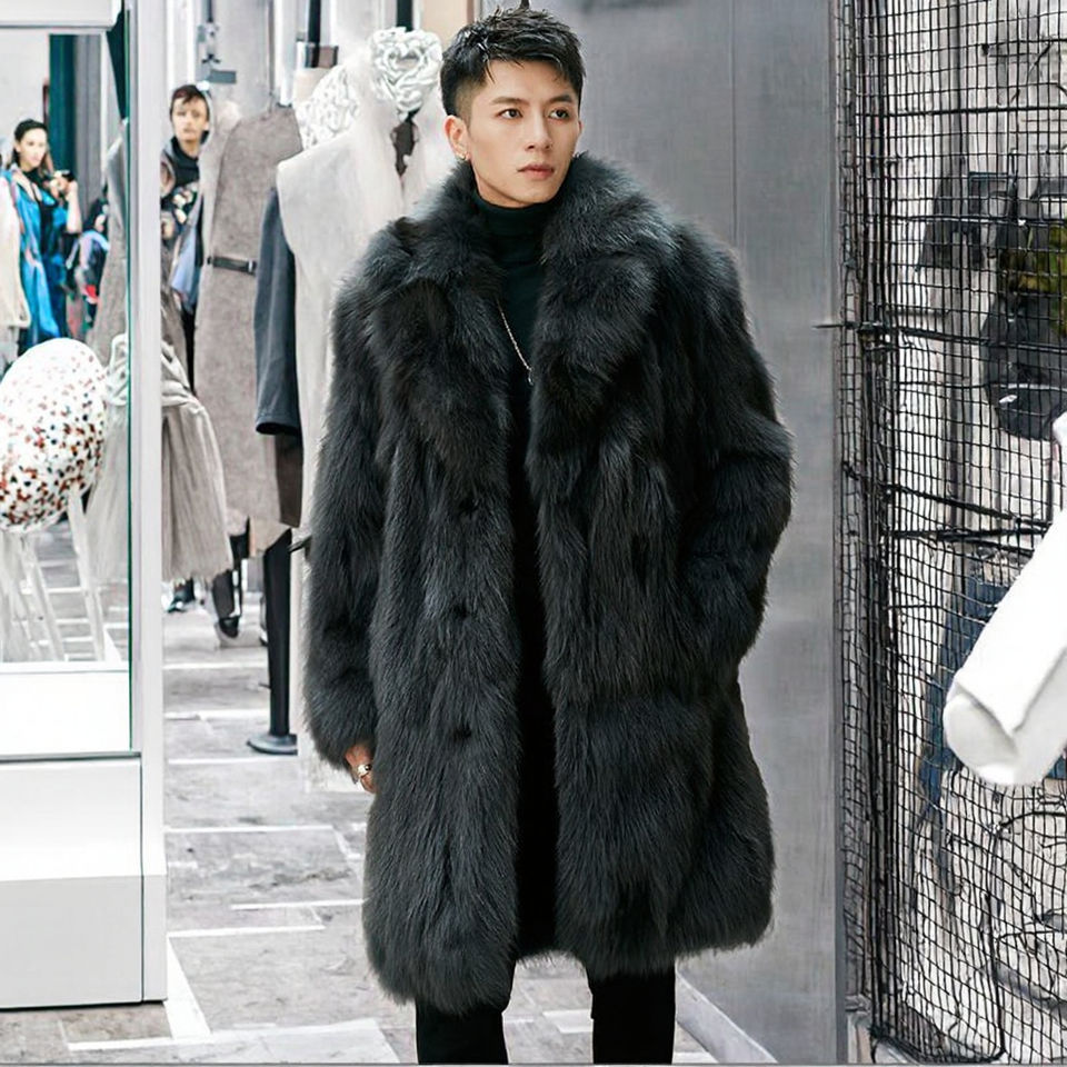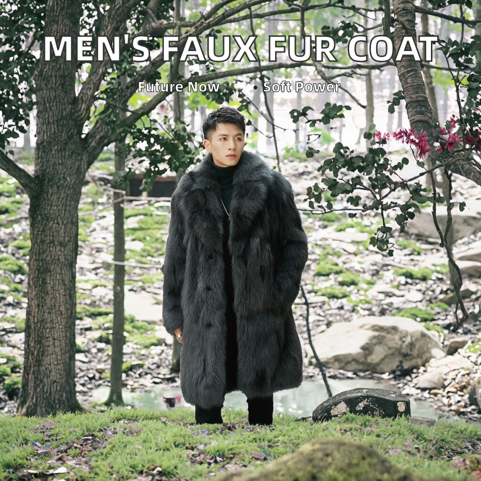 Europe Denmark Overcoat for Men Shawl Collar Faux Fur Winter Coat Warm and Cozy Trench Outerwear Woven Weaving Method