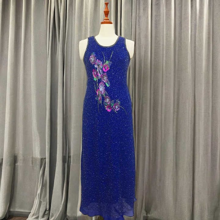 Europe Design Women's Clothing Sequined Luxury Evening Dress Hand-Embroidered Red Carpet Sexy Lady's Dress Maxi Cami Style Gown