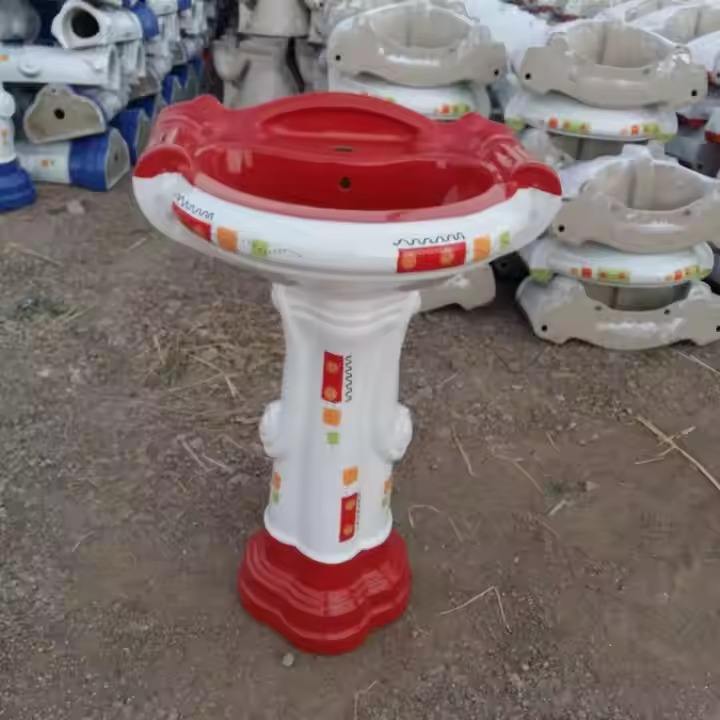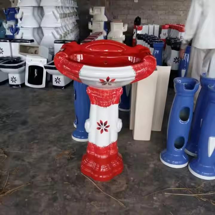 Europe Rectangular Pedestal Wash Basin One-Piece Free Standing Ceramic Pedestal Sink for Hotel Bathrooms