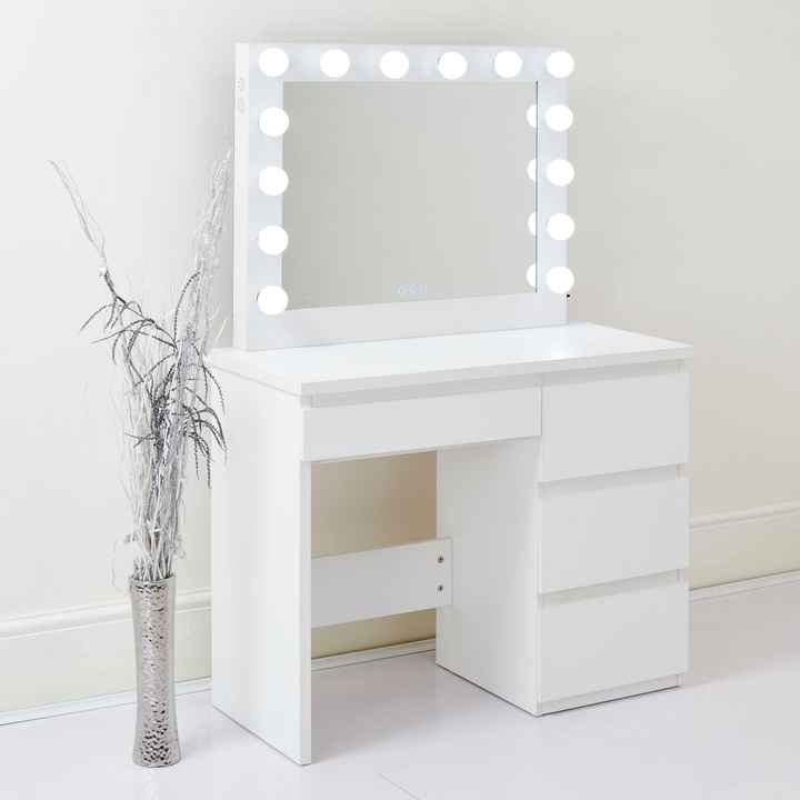 Europe Shabby Chic Girls Bedroom Dresser White Modern Dressing Table with Large Led Mirror
