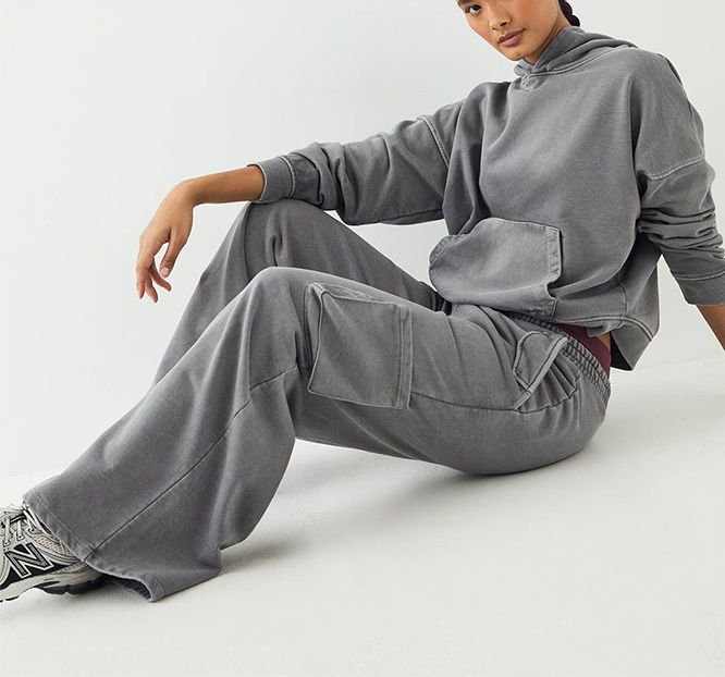 Europe Size Heavyweight Women Washed Tracksuit Cargo Pockets Pattern Cotton Distress Vintage Printed Graphic Causal Jogging Suit