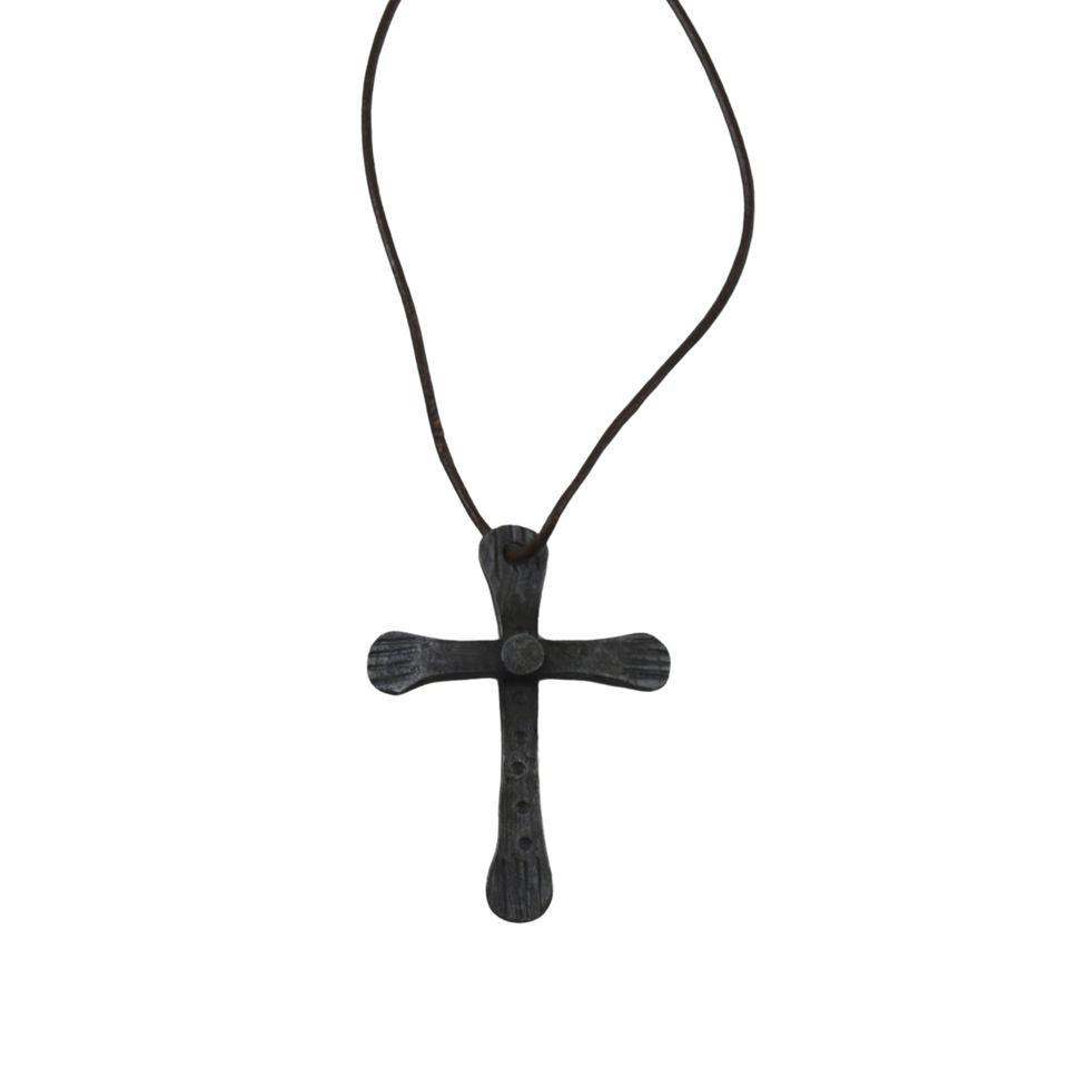 Europe and American Trendy High Quality Vintage Cross Pendant Necklace Metal hand forge Iron Leather Strap for Wedding and Party
