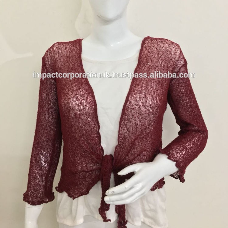 Europe's Best Selling Bali IKAT Women's One Size Stretch Net Shrug Cardigan Solid Pattern Feather Autumn/Winter Plus Size