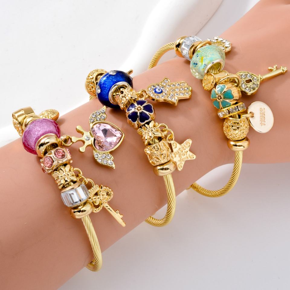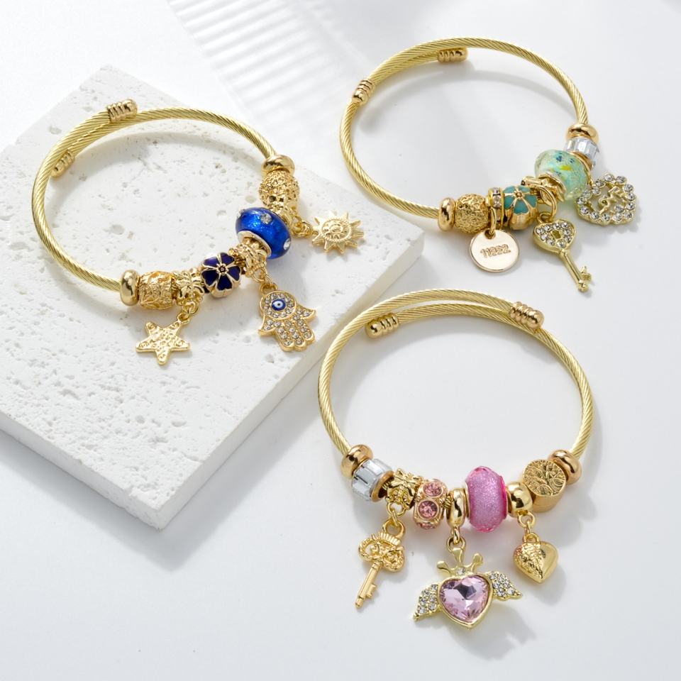 European 18k Gold Plated Key Zircon Stainless Steel Adjustable Fashionable Charm Bracelet Unisex with Customized Size