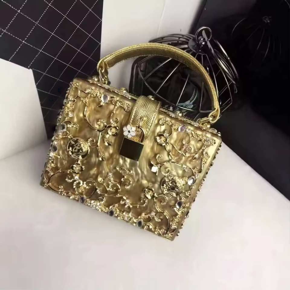 European American Acrylic Evening Bag Women Single Shoulder Crossbody Hollow Metal Carved Diamond Stone Luxury Women's Tote Bags