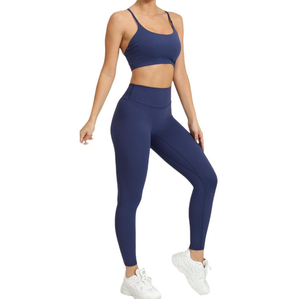 European American Autumn Winter Women's Back Tight Sports Fitness Pants Bra Yoga Suit Solid Breathable