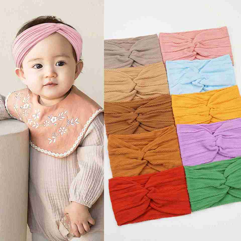 European American Children's Solid Color Stretch Nylon Jacquard Wide Cross Headband 3552 Baby Headband