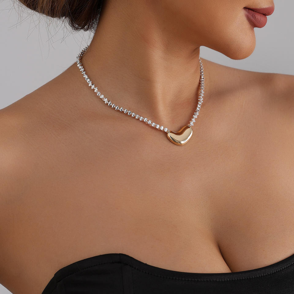 European American Cross-Border Jewelry Retro Broken Irregular Heart Beaded Ins Gold and Silver Color Block Style Personality