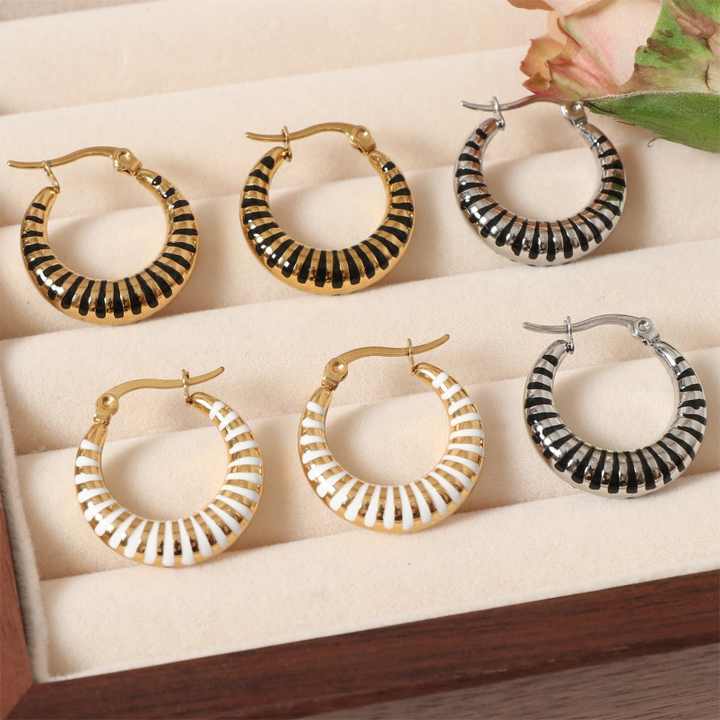 European American Fashion Simple Real Gold PVD Stainless Steel Dripping Oil Earrings Women Hot Selling Trendy HOOP Hook Justop