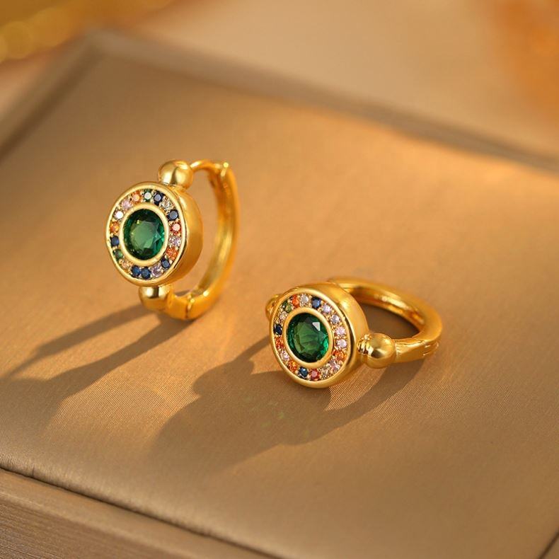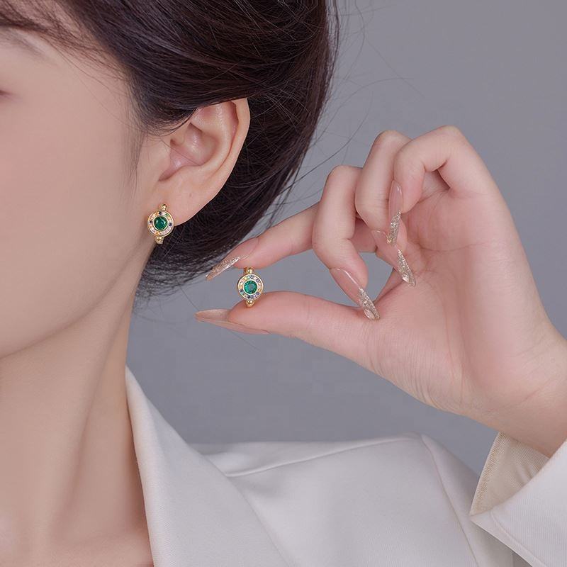 European American High-End Exquisite Micro Inlaid Color Diamond Stud Earrings Trendy Geometric S925 Silver Gold Plated Women's