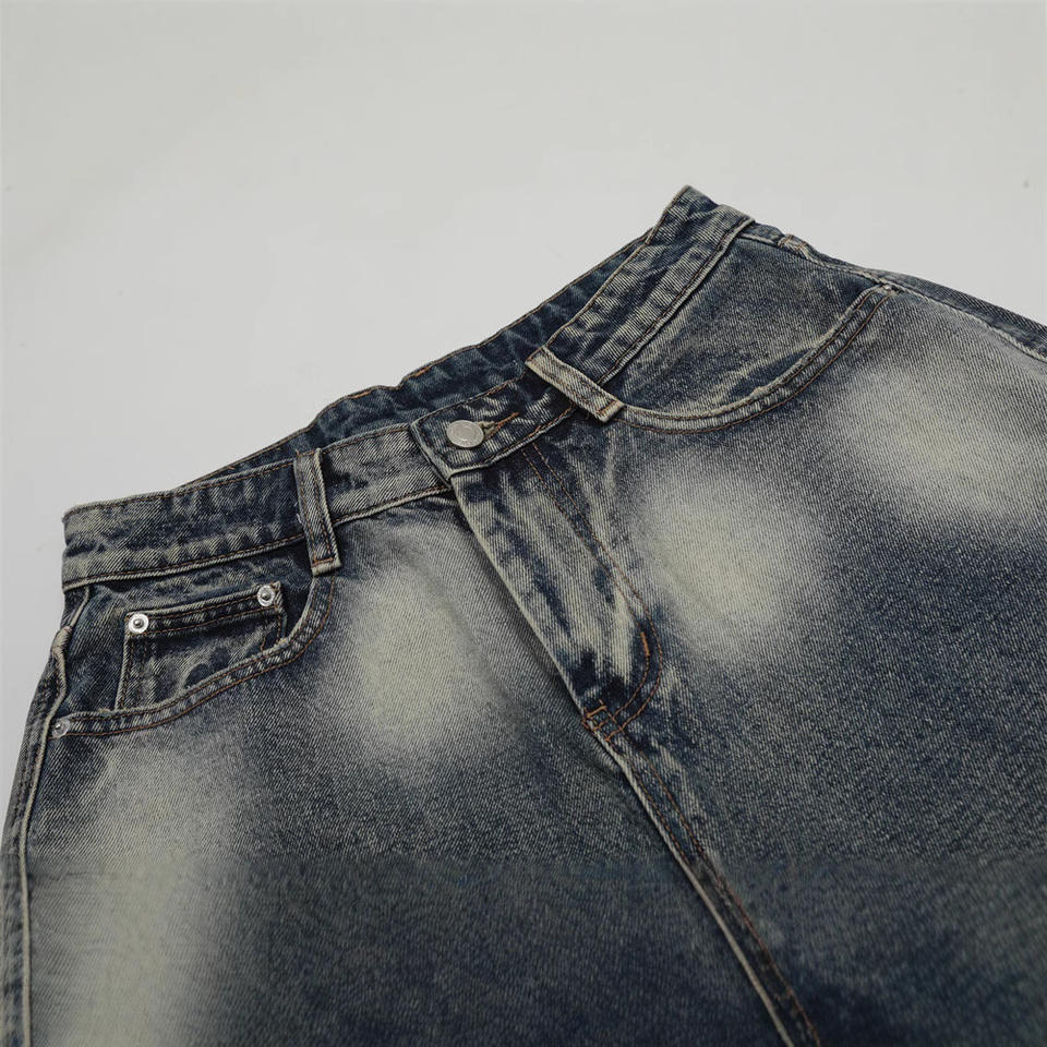 European American High Street Coated Bamboo Fiber Poncho Jeans Niche Tie-Dye Distressed Straight Wide-Leg Trendy Loose New Men's