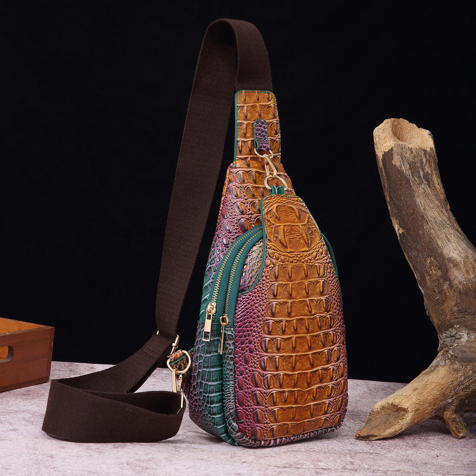 European American Retro Fashion Women's Chest Bag Wide Shoulder Strap Waist Crossbody Bag Crocodile Pattern Brahman Independent