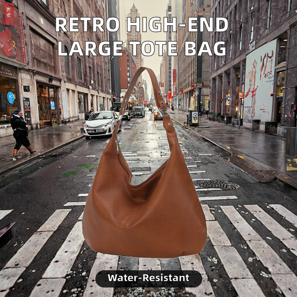 European American Retro High-End Women's Large Capacity Tote Bag New PU Zip Waterproof Shoulder Bag Polyester for Commuting