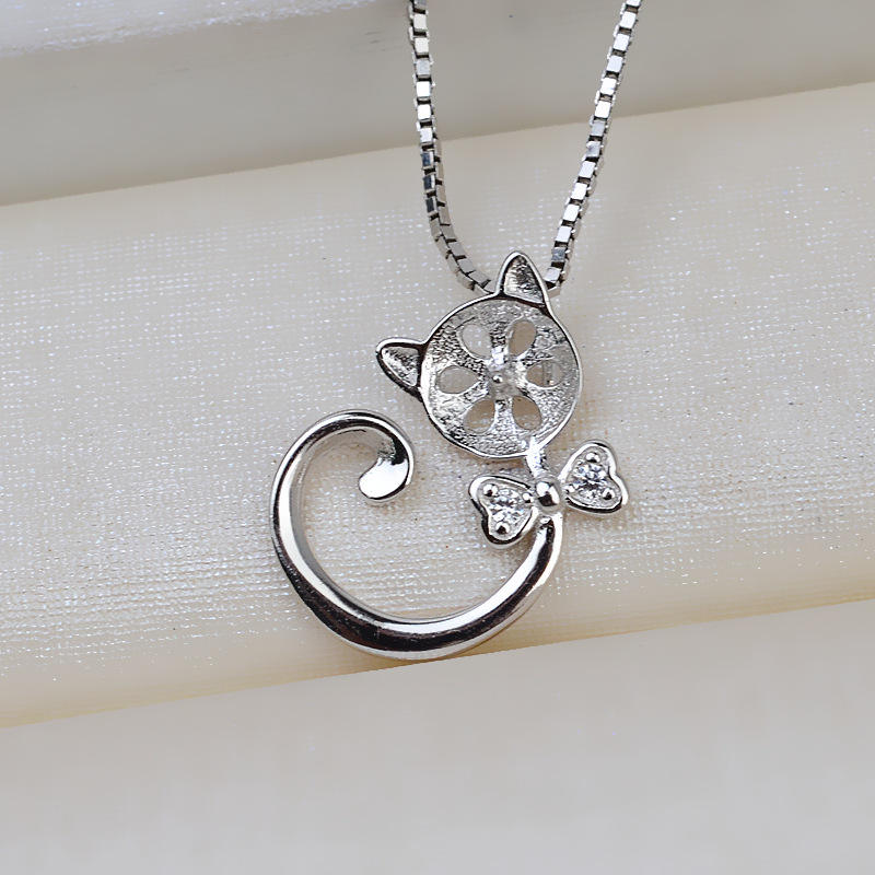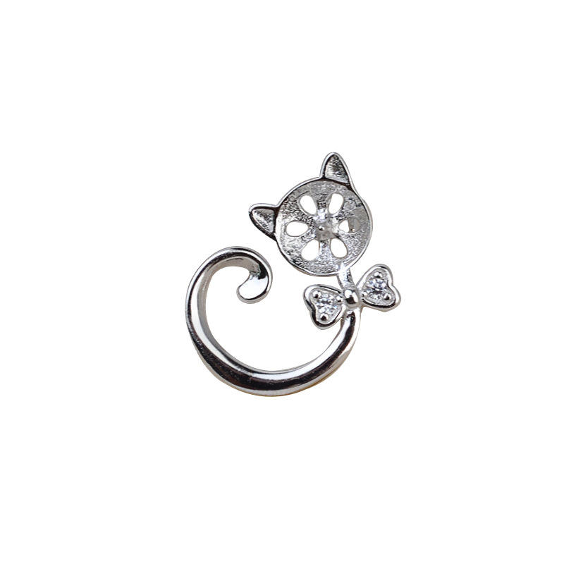 Wenchi European American S925 Silver Cat Head Pendant Women's 7-8 Pearl DIY Jewelry Findings Headband Accessories Empty Tray