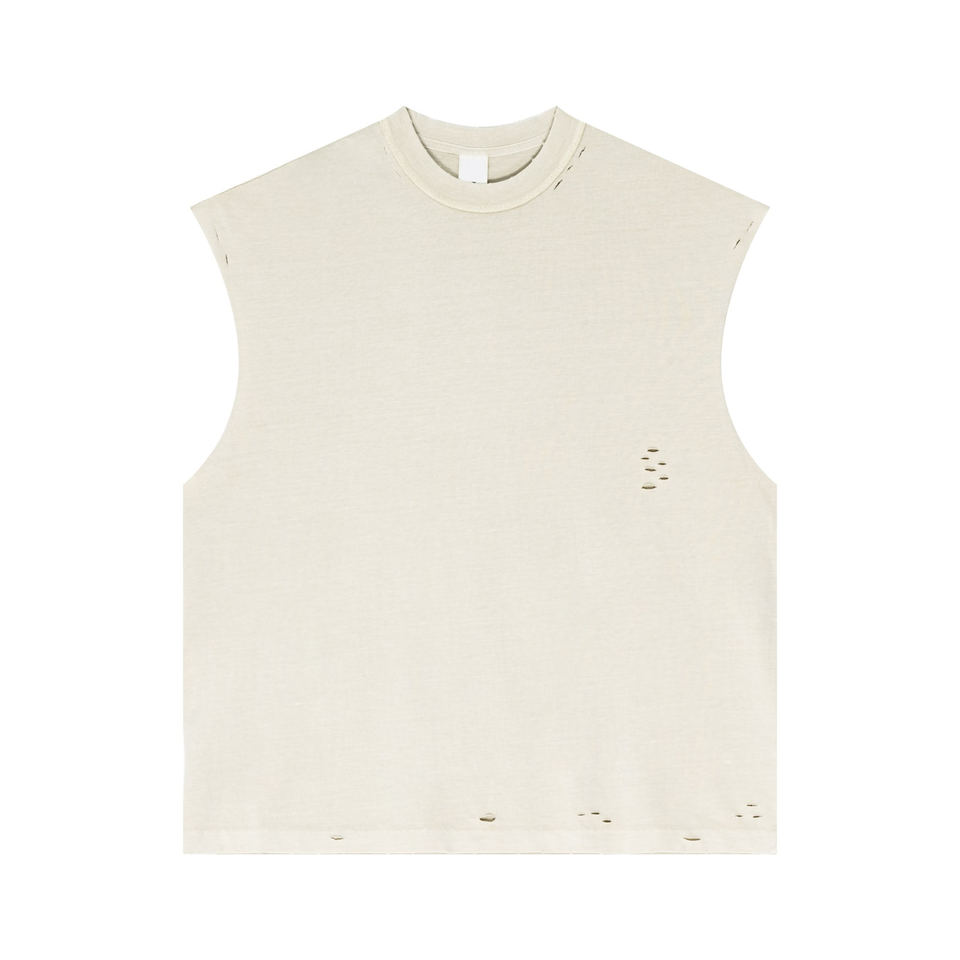 European & American Streetwear Tank Top 2025 Summer Unisex Distressed Cotton Cutout Sleeveless