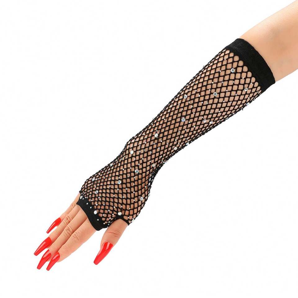 European American Style Colorful Diamond Performance Hiking Gloves Hollow Hot Rolled Diamond Sparkling Mesh Fishing Net Sexy for