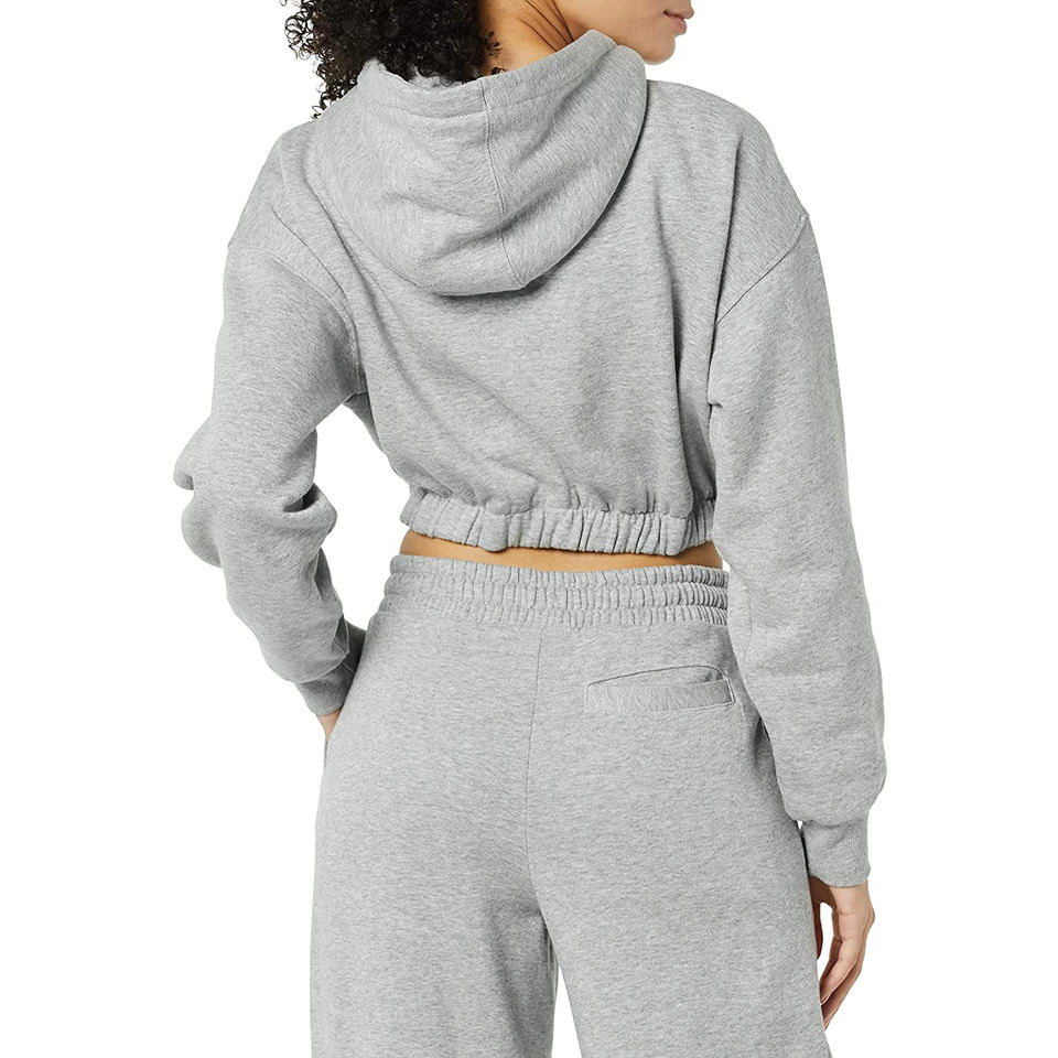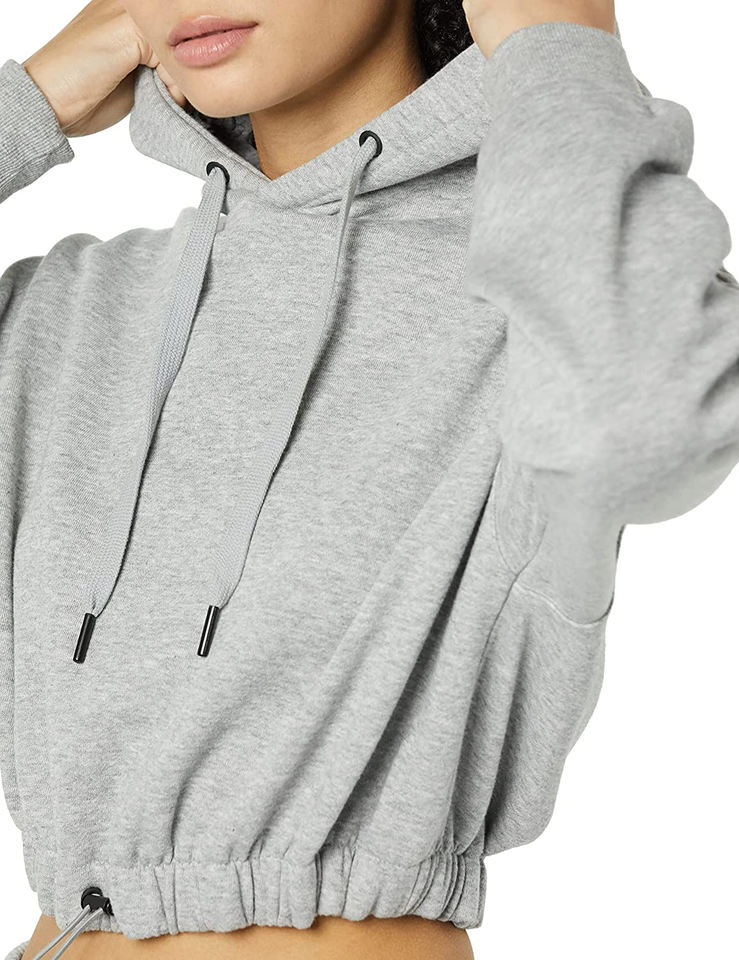 European American Vintage 345G Thick Fleece Pullover Hoodie OEM Custom Logo Women Causal Cropped Hoodie Crop Plain Hoodies
