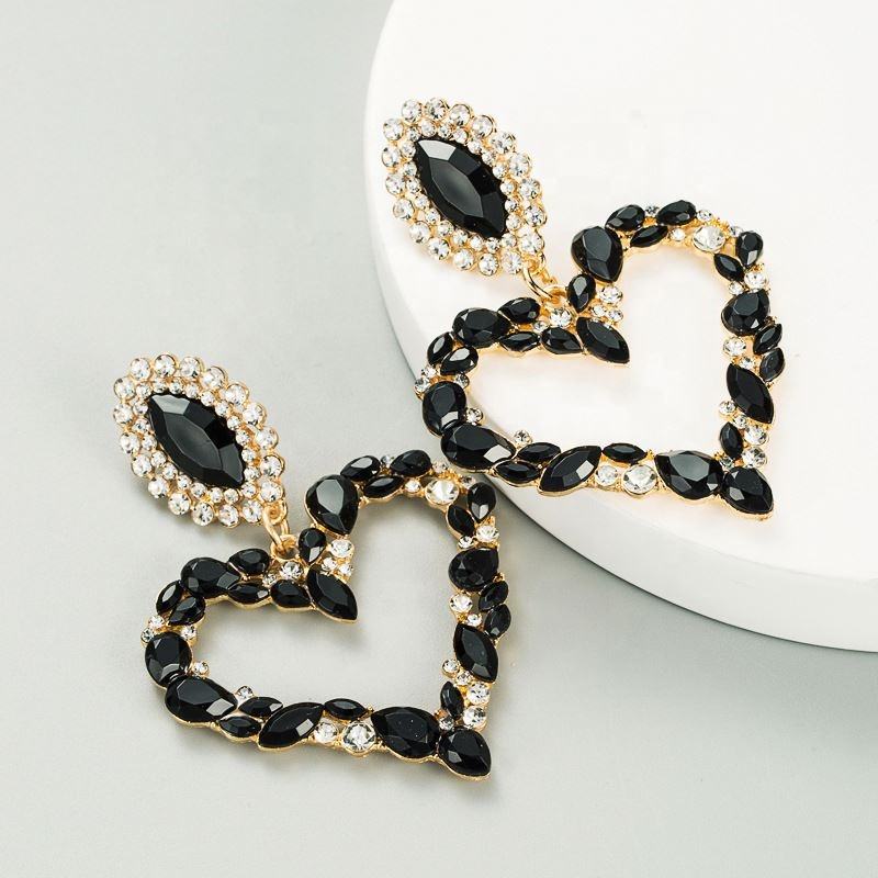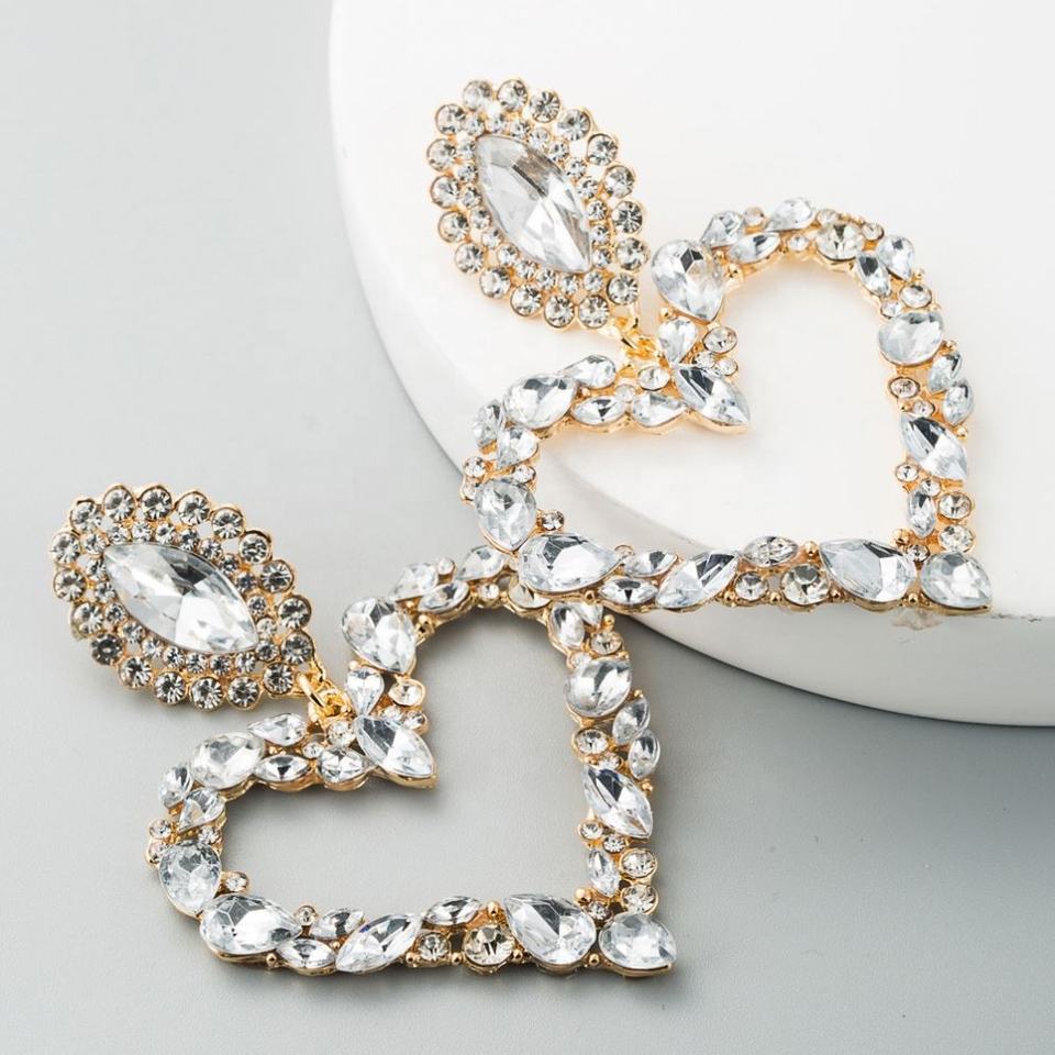 European American Vintage Elegant Exaggerated Earrings Korean Version Trendy Super Shiny Zircon Gold Plated Heart Shaped Stud