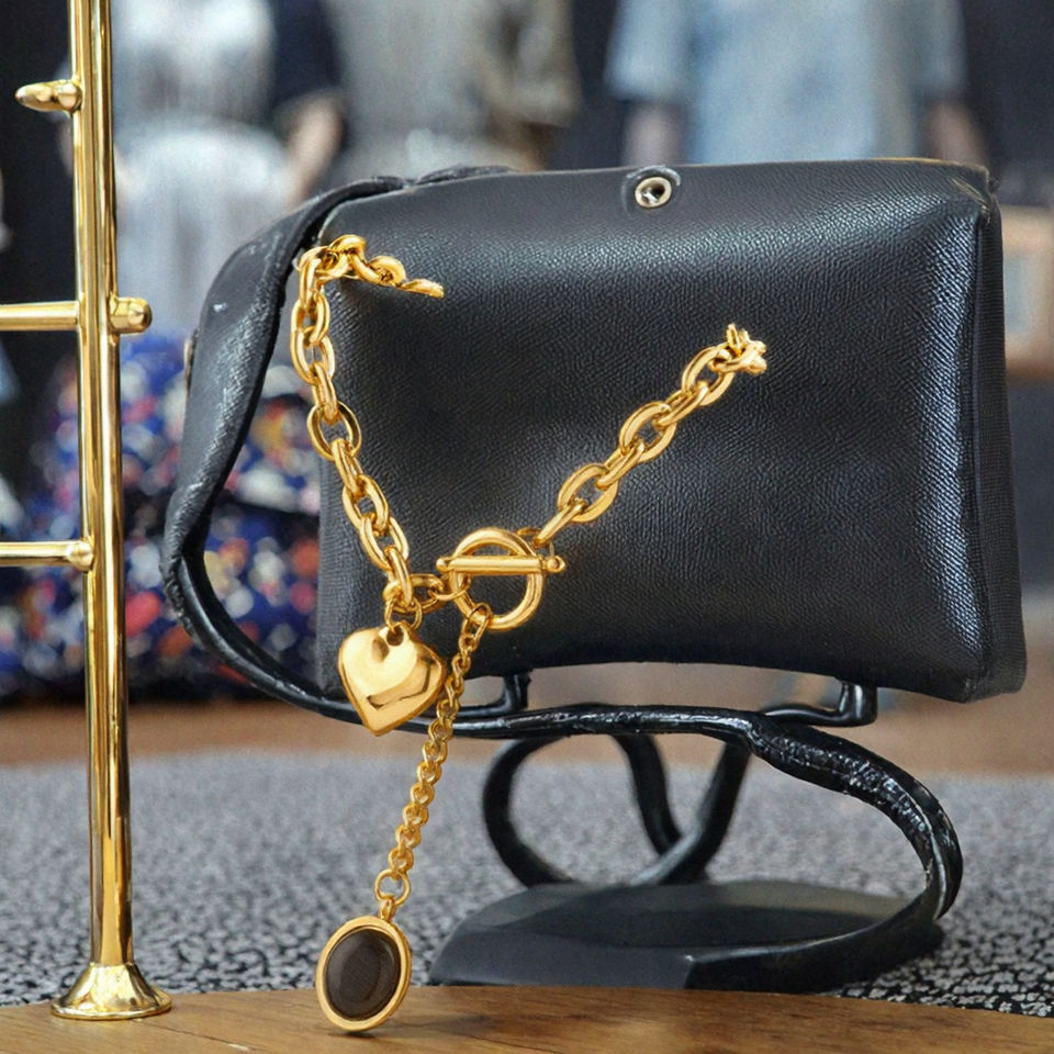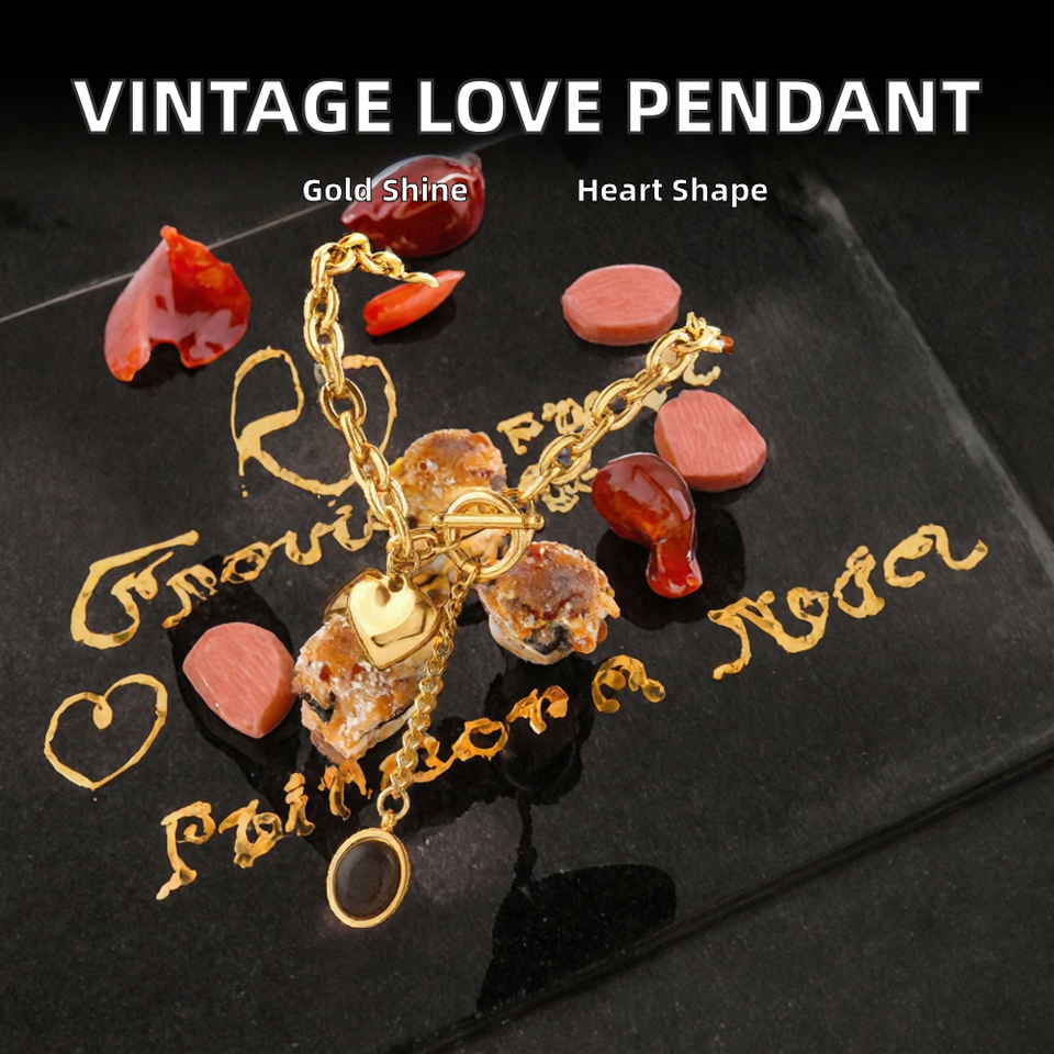 European American Vintage Trendy Pendant Necklace Unisex Personalized Simple Love OT Buckle Gold Plated Stainless Steel Heart