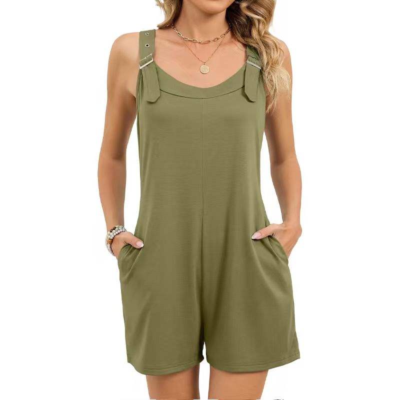 European American Women's Fashion Spring Summer New Style Sexually Attractive Buckle Jumpsuit with Pockets and Straps