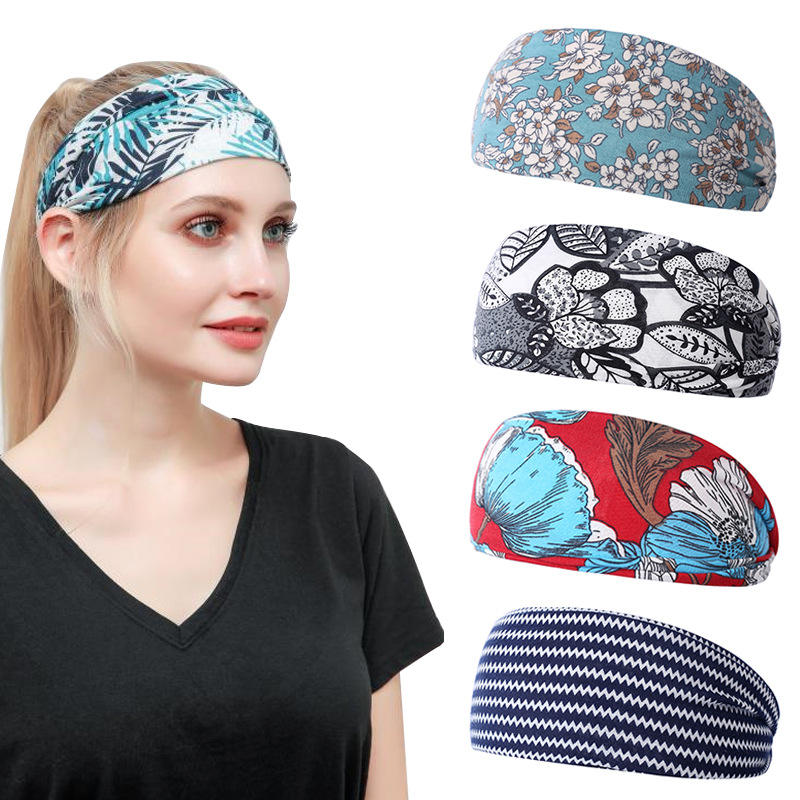 European American Women's New Sports Sweatband Wide-Edge Printed Yoga Running Fitness Headband Fabric Headscarf Wholesale