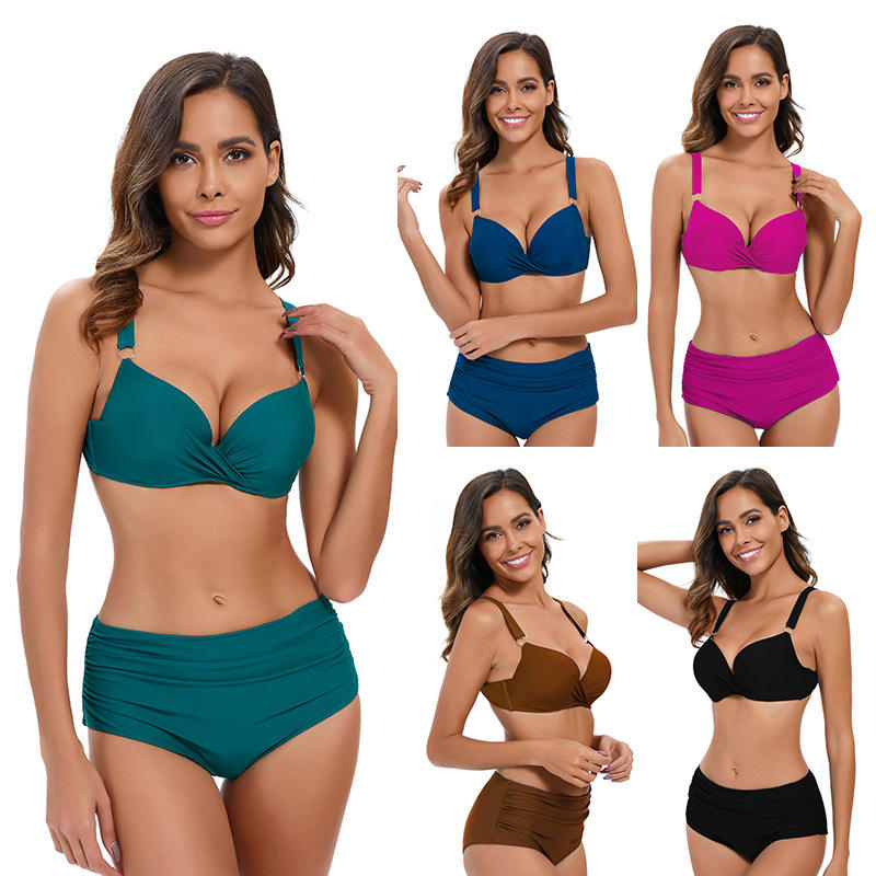 European American Women's Stylish Solid Pattern Color Block Design Cut-Out Back One-Piece Fitness Swimwear Sexy Beachwear