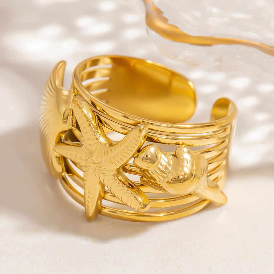 European And American Style Shell Star Cuff Bracelet 18k Gold Zinc Alloy Unisex Jewelry Gift