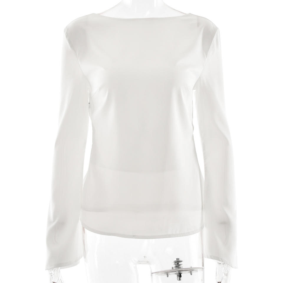 European And American Style Solid Color Satin Backless Slim Fit Top Bell Sleeve Women's Blouse Party Wear