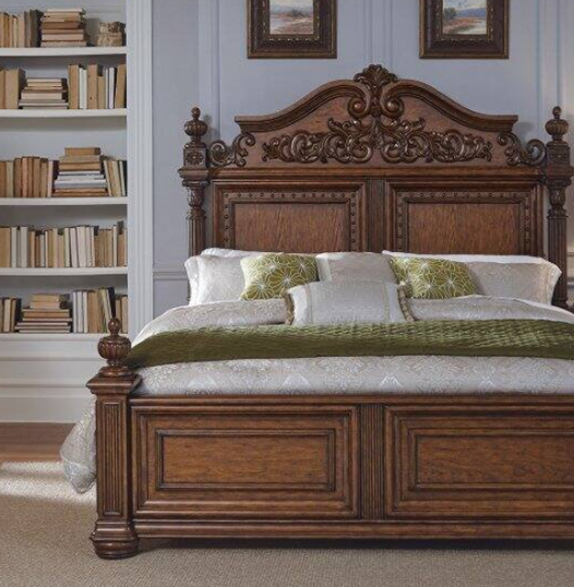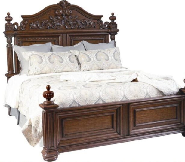 European Antique Style Carving Double Bed With Gold Foil High Quality Luxurious Custom Solid Wood Frame King Size Bed