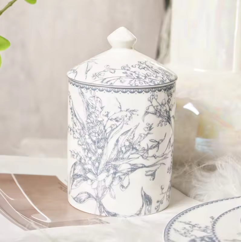 European Blue Flower Printed Bone China Porcelain Dinner Plates Lily of the Valley Design Vintage Serving Dishes and Plates