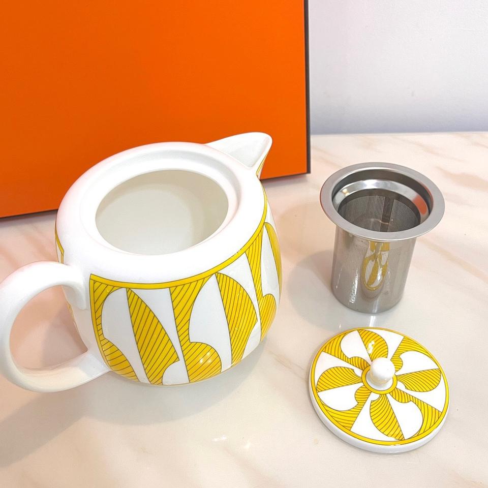 European Ceramic Geometric Yellow Sun Series New Sunshine One Pot Two Cup and Plate Coffee Set Exquisite Bone Porcelain Tea Set