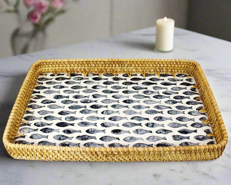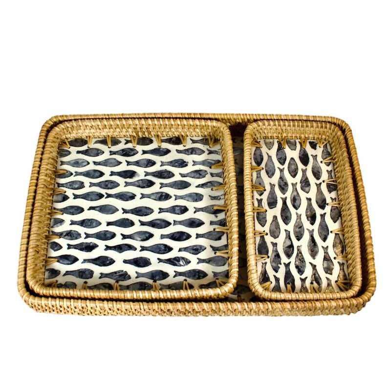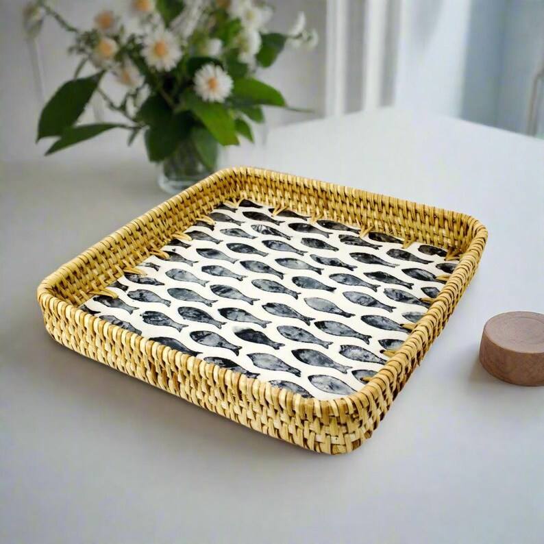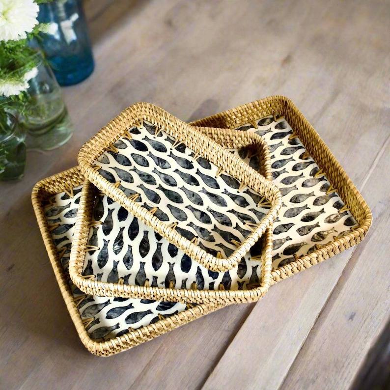 European Design Mother Pearl Rattan Multifunction Serving Tray Tableware Decor for Kitchen Household Snack Storage Tea Tray