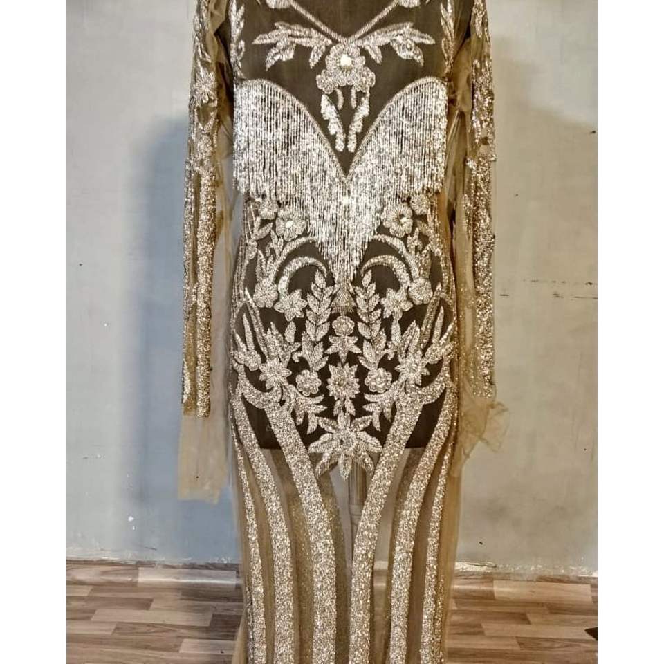 European Style Beaded Embroidered Wrinkle Free Net Fabric for Indian Pakistani Wedding Party Dresses Customized Front Back
