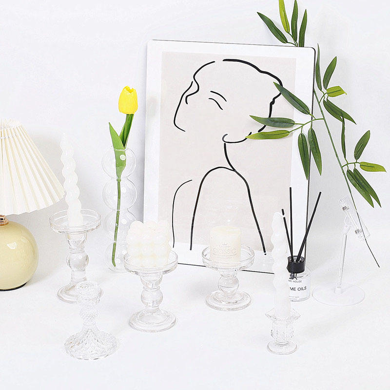 European Glass Candlestick 10.3cm Tapered Design Heat Resistant Home Decoration Gift
