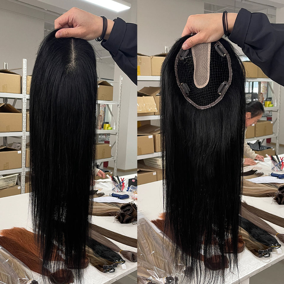 European Human Hair Fish Net Topper YUANZHEN 1B Natural Black Remy Hair 100% No Shedding No Tangling