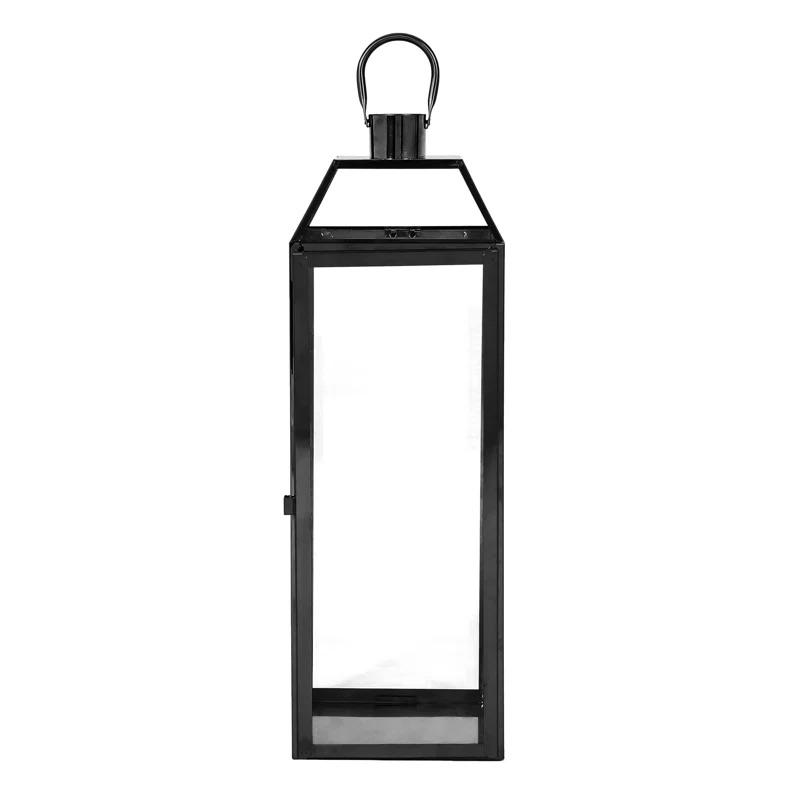 European Large Luxury Glossy Black Nickel Metal Candle Holders Lanterns Glass Jars for Christmas Decorative Home Use Table Floor