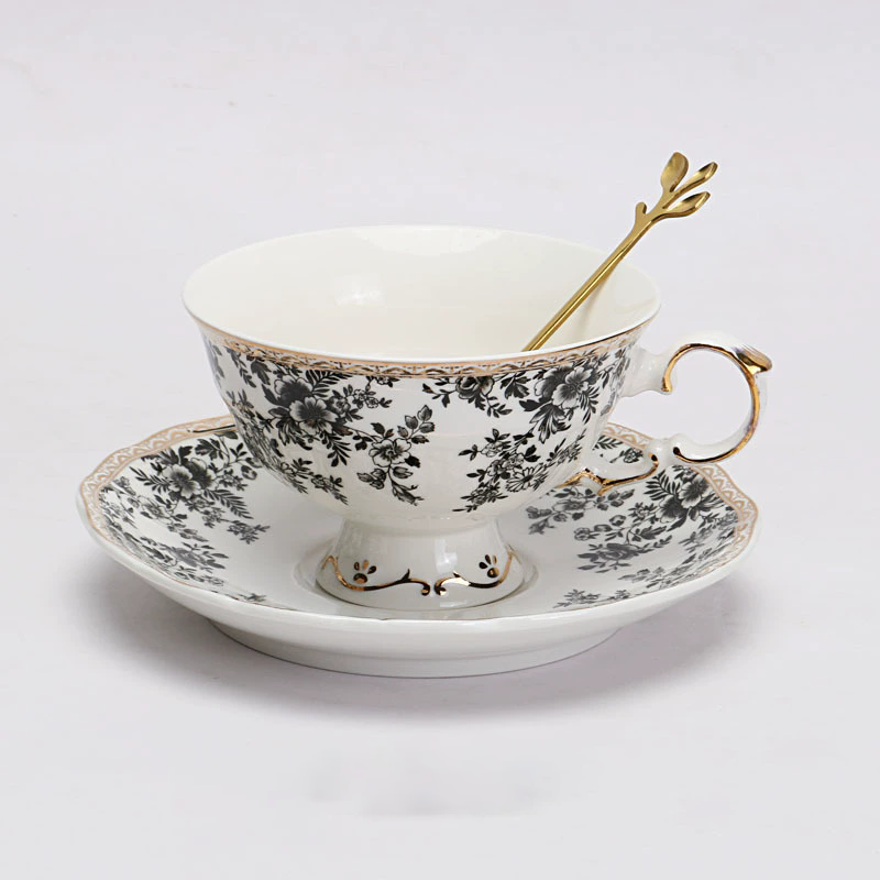 European Light Luxury Gold Coffee Cup Saucer Retro Floral Afternoon Tea Cup