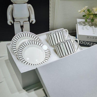 European Luxury Black Line Dining Room Set with Best Selling Ceramic Cup and Saucer for Drinkware Use