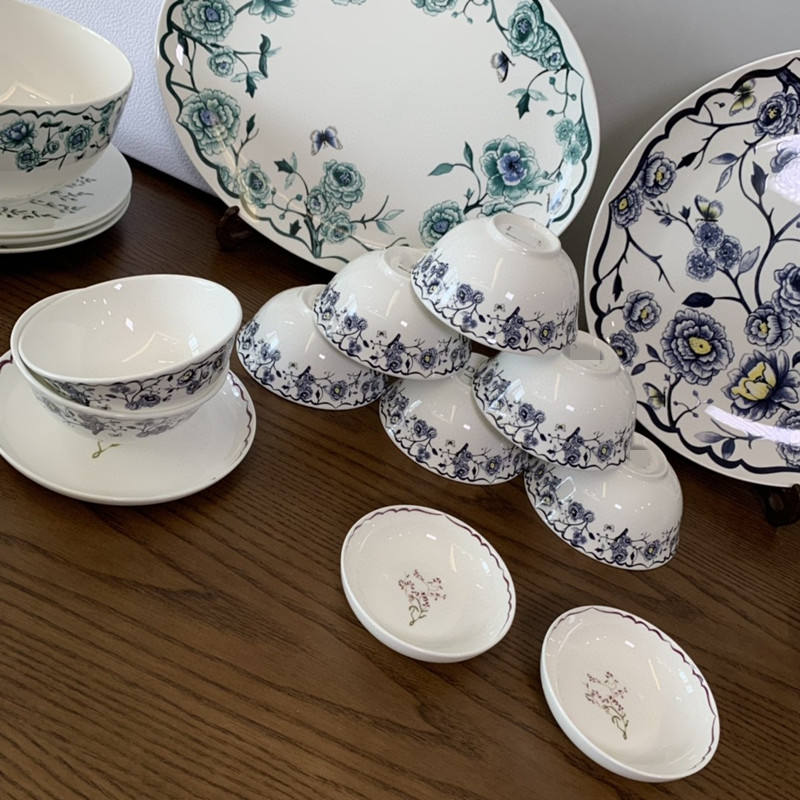European Luxury Bone China Charger Plate Green Porcelain 41-Piece Dinner Set with Plant Pattern Custom Logo Family Use Glft Box