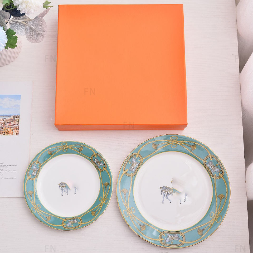 brand name:Simple Plant Pattern 2pcs Porcelain Dinner Plate
