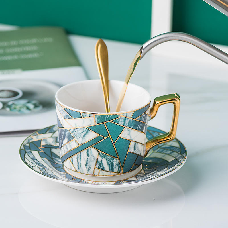 European Luxury Ceramic Mug and Saucer Set House Coffee Cup & Tea Infuser with Stylish Design