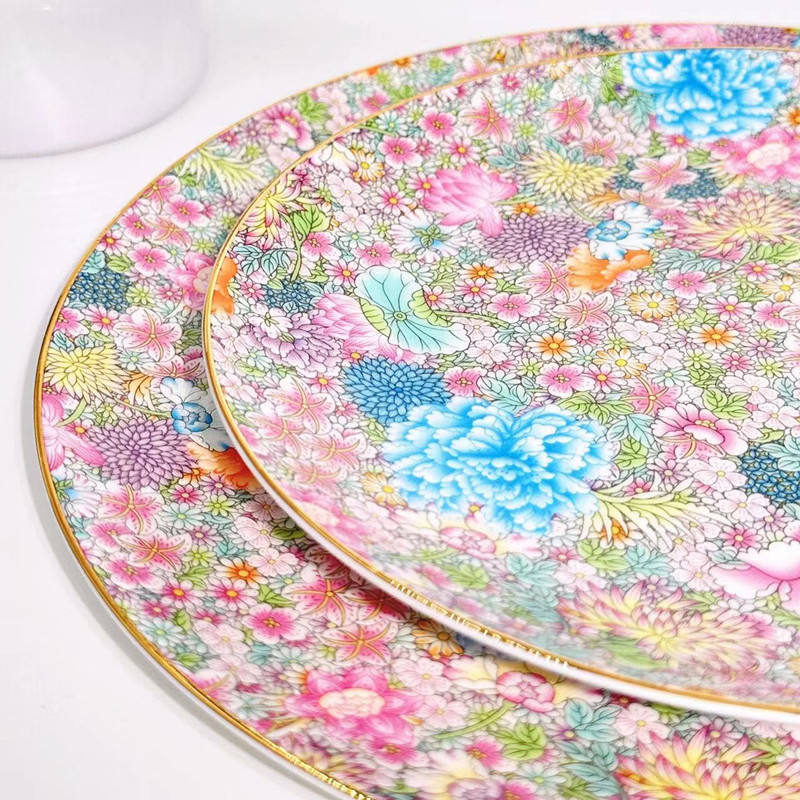 European Medieval-Style Enamel Fruit Platter with Golden Edge for Weddings and Pastries Dried Fruit Display Plate
