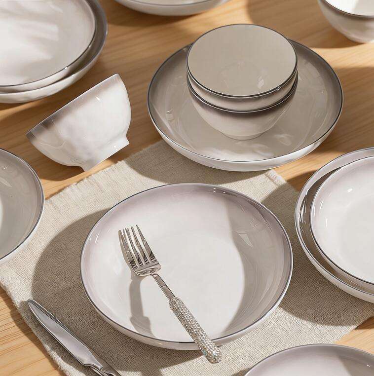 European Nordic Style Gradient Color Ceramic Dinner Tableware Set Nordic Pattern for Home Restaurant Use